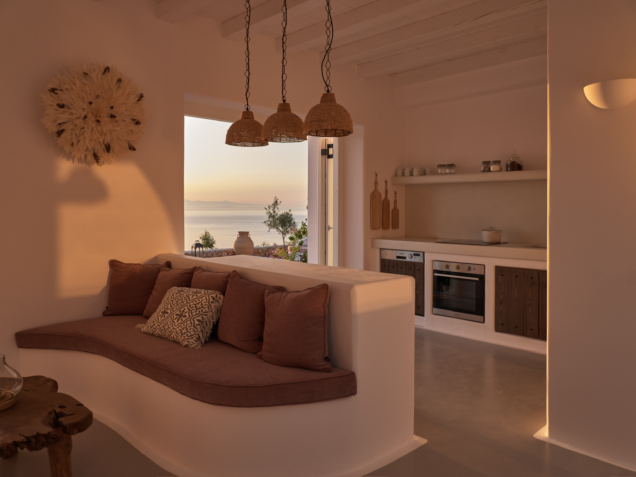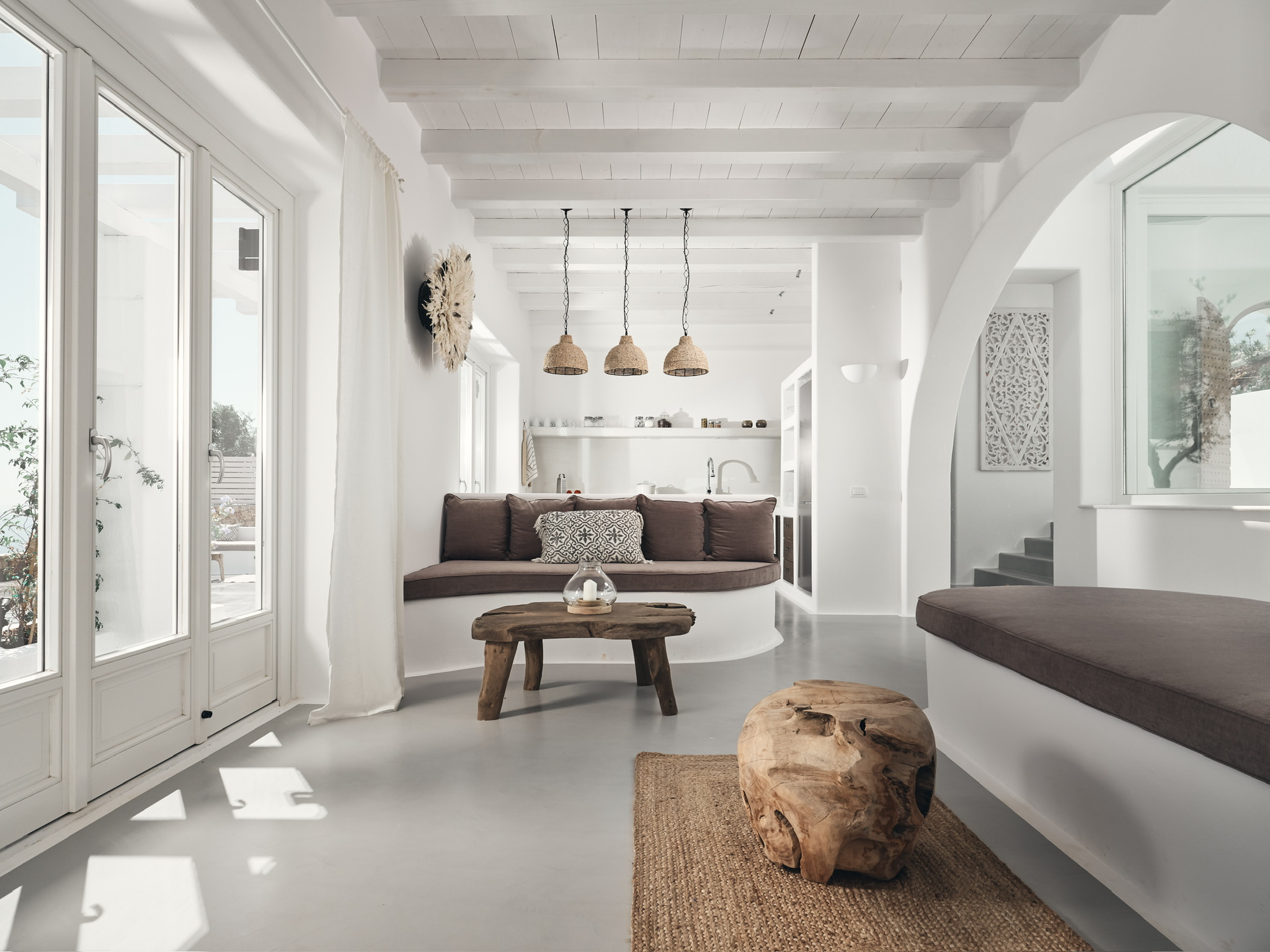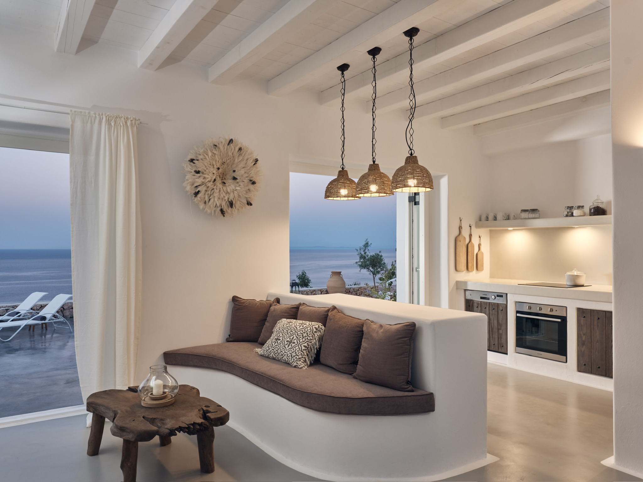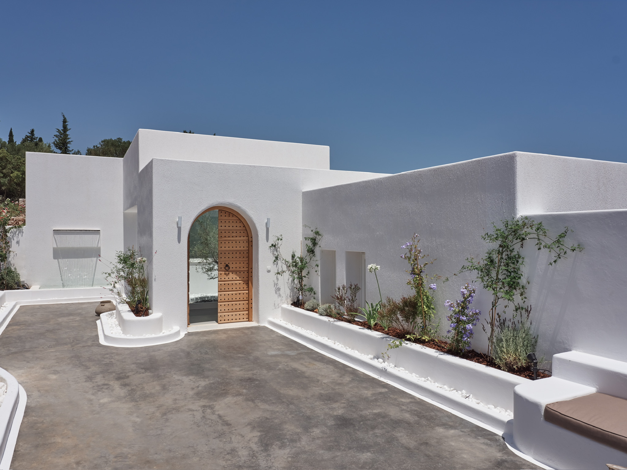 Villa Maia is a striking, design-led villa set in one of the most desirable locations in northern Zakynthos. This beautiful, contemporary property is within easy walking distance of the exclusive Peligoni Club and a short drive to the charming port of Agios Nikolaos- yet enjoys a wonderfully peaceful and private setting with far-reaching sea views. Designed around a striking glass atrium on entry, and wrapped by the C-shaped layout, Villa Maia is flooded with natural light and showcases an exquisite blend of contemporary Mediterranean architecture and relaxed luxury. Clean white arches, natural stone, soft textures and thoughtfully curated furnishings give the villa a calm, refined atmosphere throughout. Comfortably sleeping up to 6 guests across three spacious and tranquil bedrooms- each comprising of its own ensuite bathroom and terrace access, creating peaceful retreats for rest and relaxation. The bright, open-plan kitchen and living area form a central, light-filled space, where large folding glass doors open fully onto generous ocean-view terraces. These outdoor spaces are perfect for long, leisurely dinners, shaded lounging and soaking up the views throughout the day. The kitchen is fully equipped, and the living area includes a smart TV, perfect for relaxed evenings in. Villa Maia’s terraces and pool area are designed for effortless indoor-outdoor living, with jacuzzi pool, shaded pergolas, built-in seating, and stylish dining spaces that make the most of the villa’s exceptional setting overlooking the Ionian Sea. With its unique architecture, serene ambience and a convenient location, Villa Maia is an exceptional choice for families, friends or couples seeking a stylish and sophisticated escape in Zakynthos.
